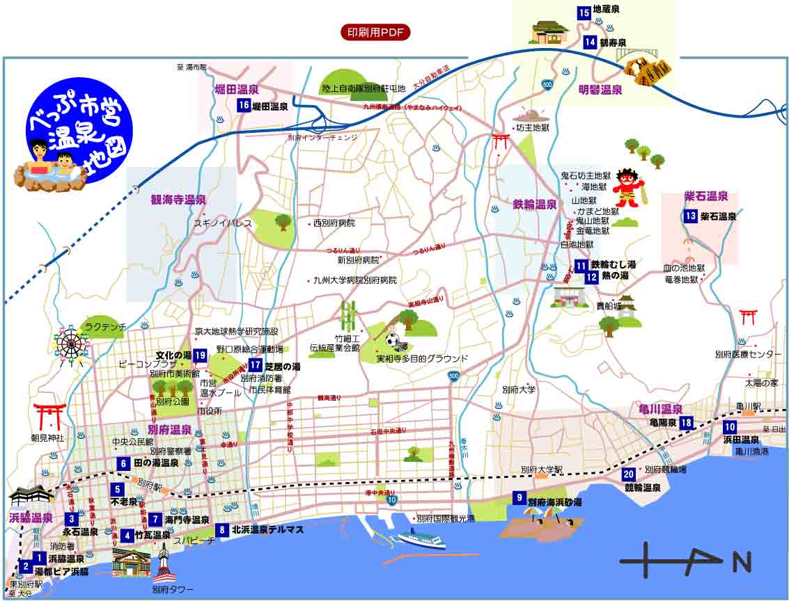 別府温泉とはいえ、この別府全体を見るとかなり広く、温泉エリアも各々に分かれております。