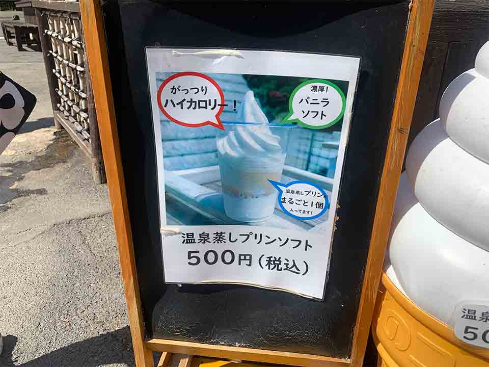温泉蒸しプリンソフト 先ほどの地獄蒸しプリンとソフトクリームのコラボ